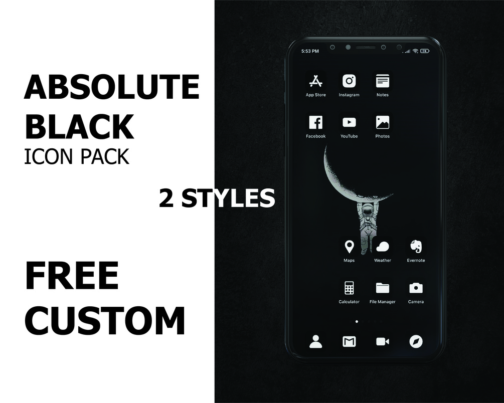 Dark Mode App Icons - PREMIUM - MINIMAL- Icon Pack for Aesthetic Black iOS14 Home Screen | Wallpaper | High Quality