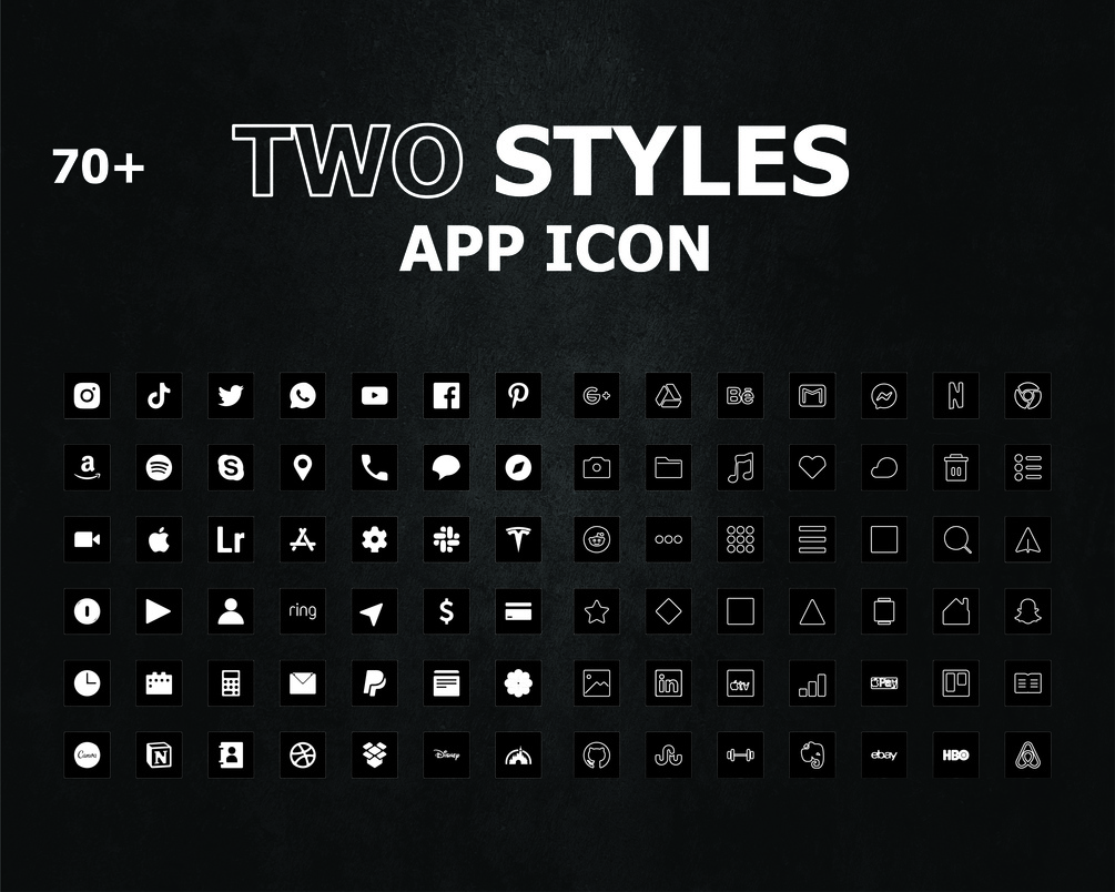 Dark Mode App Icons - PREMIUM - MINIMAL- Icon Pack for Aesthetic Black iOS14 Home Screen | Wallpaper | High Quality